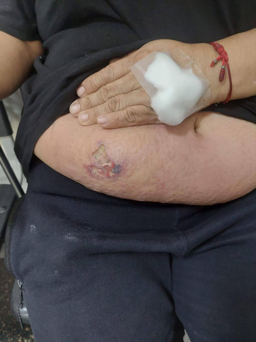 Imagen de la trabajadora con presunto ántrax en el hospital Felix Torrealva Gutierrez. Fuente: Ica en vivo